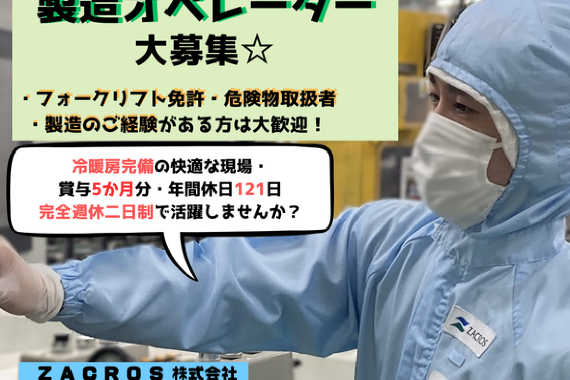 ・国内シェア約70%を誇る「技術のZACROS」!東証プライム上場の安定企業でキャリアを築けます。