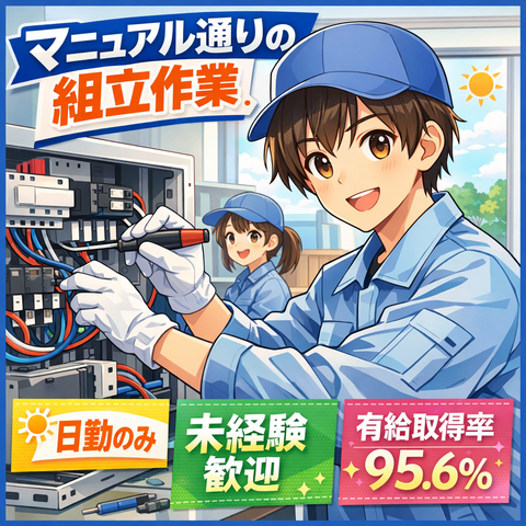 ・電気の知識は入社後でOK!図面やマニュアル完備の組立作業。未経験スタートの先輩が多数活躍している安心の現場です。