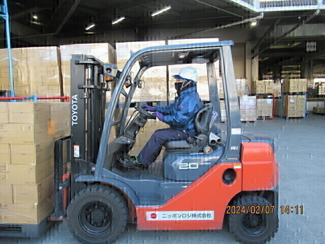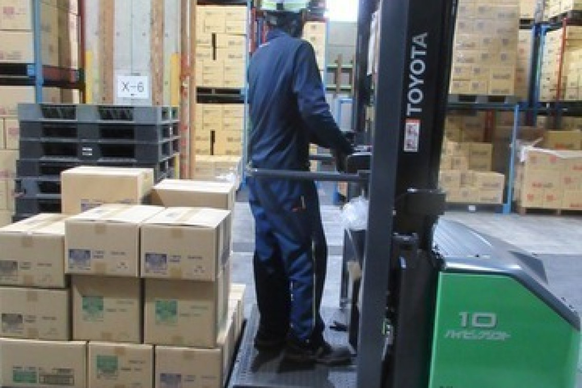 フォークリフトを使った商品のピッキング作業です。