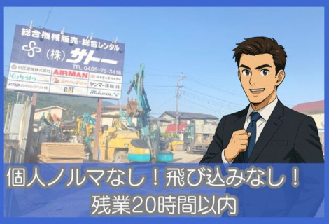 株式会社サトー 建機レンタル営業サポート 法人営業 神奈川県 足柄上郡山北町 ( 月給 ) 290,000円~ 400,000円 正社員 未経験OK!初年度から月収40万円も可能/内勤中心で訪問は週2日程度