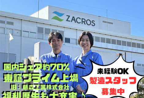 ZACROS株式会社 横浜事業所 製造オペレーター(包装材料) 製造オペレーター 神奈川県 横浜市金沢区 ( 月給 ) 230,000円~ 330,000円 正社員 冷暖房完備の快適な工場勤務!東証プライム上場の安定基盤のもと、賞与実績5ヶ月分以上の高待遇をお約束。土日休みでプライベートも最高に充実します。