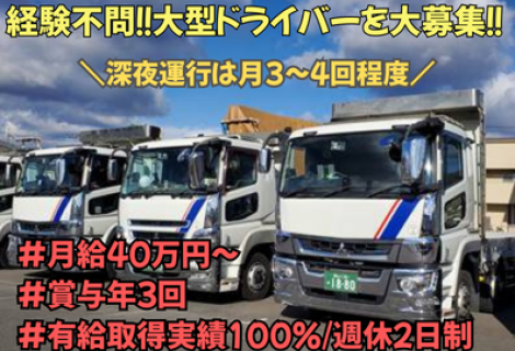 笠岡通運株式会社 水島営業所 日帰り大型ドライバー 配送ドライバー 岡山県 倉敷市 ( 月給 ) 260,000円~ 320,000円 正社員 普免OK!近距離・日帰り配送。無理なく続ける大型ドライバー